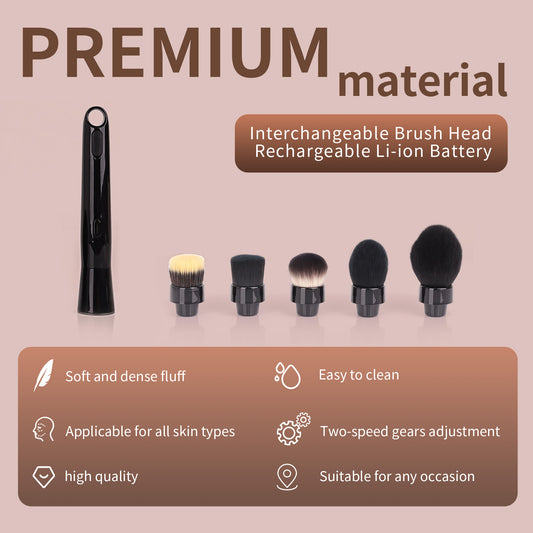 Electric Rotating Makeup Brush Set, 5 Vegan Brush Heads, Rechargeable Blending Face Brushes For Foundation, Blush, Powder, Bronzer, Contour, Highlight & Airbrush Finish, Flat Kabuki Brush